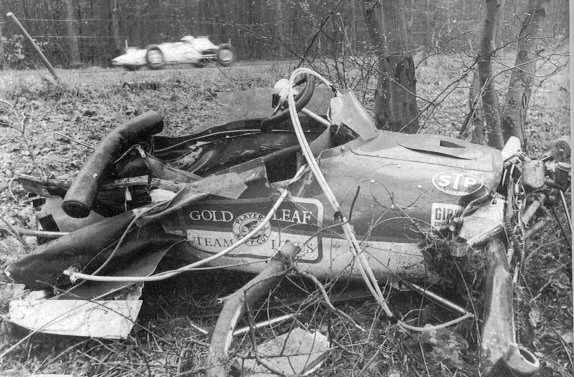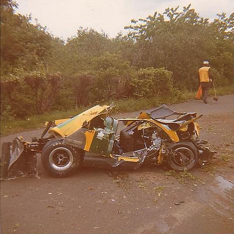 Jim Clark's Lotus after his fatal crash at Hockenheim 1968